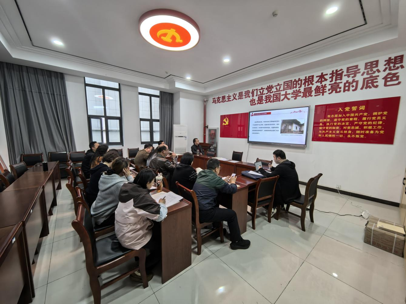 会上,谭一丰、郭广明两位同志先后领学习近平总书记在地方工作时关于正确政绩观的重要论述,引导全体党员深刻把握正确政绩观的核心要义,牢固树立并始终践行正确政绩观。李泽阳同志以2025年新修订《中国共产党党校(行政学院)工作条例》为主题讲授党课,结合党校工作实际分享学习体会,为支部党员精准把握条例进行了系统讲解。